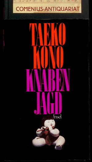 Kono Taeko, Knabenjagd. Erzählungen. 1. Auflage. Frankfurt am Main: Insel-Verlag, 1988. 147 Seiten. Pappband (gebunden) mit Schutzumschlag. 262 g* Ausgewählt, aus dem Japanischen übertragen und mit einem Nachwort versehen von Irmela Hijiya-Kirschnereit. - Notizen auf dem hinteren Innendeckel.
