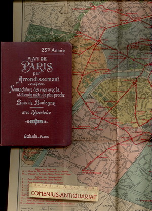 [Paris] Plan de Paris par arrondissement. Comprenant 1) La nomenclature des rues avec la Station du Métro la plus proche et l'indicateur des autobus, tramways, métropolitain, musées, etc. 2) Le plan de chaque arrondissement... 3) Un grand plan d'ensemble. Paris: Guilmin, [ca. 1920]. 147 Seiten Text + Karten. Leinen. Kleinoktav. 142 g* Gebrauchsspuren, Papier etwas gebräunt, Faltplan verfaltet.
