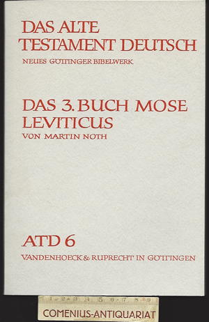 Noth, Martin, Das dritte Buch Mose. Leviticus. 5., unveränderte Auflage. Göttingen, Zürich: Vandenhoeck u. Ruprecht, 1985. 181 Seiten, Fraktursatz. Kartoniert. Grossoktav. 307 g* Das Alte Testament deutsch; 6. - Übersetzt und erklärt von Martin Noth
