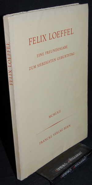 Würgler, Hans und Arthur Loosli [Hrsg.], Felix Loeffel. Eine Freundesgabe zum 70. Geburtstag. Bern: Francke, 1962. 109 Seiten mit Abbildungen. Kartoniert mit Schutzumschlag. 4to. 318 g* Schwache Gebrauchsspuren, Schutzumschlag schwach lichtrandig. Wuergler | Biographien Musik | Musik | Festschrift | liber amicorum | Felix Loeffel