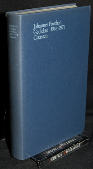 Poethen, Johannes, Gedichte. 1946 - 1971. Hamburg: Claassen, 1973. 293 Seiten. Leinen mit Schutzumschlag. 507 g* Herausgegeben und Nachwort von Jürgen P. Wallmann. - Obere Ecken und Rücken oben leicht bestossen, S.128/129 verfaltet bedruckt mit Textverlust (Produktionsfehler).