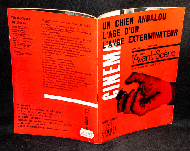 Buñuel, Luis, Un chien andalou, L'âge d'or, L'ange exterminateur. Paris: L'Avant-Scène, 1963. ca. 90 Seiten mit Abbildungen. Broschiert mit Klammerheftung. 4to. 265 x 182 mm. 180 g* Cinéma; 27-28. Bunuel surréaliste. - Etwas gebräunt, Raucherbibliothek.