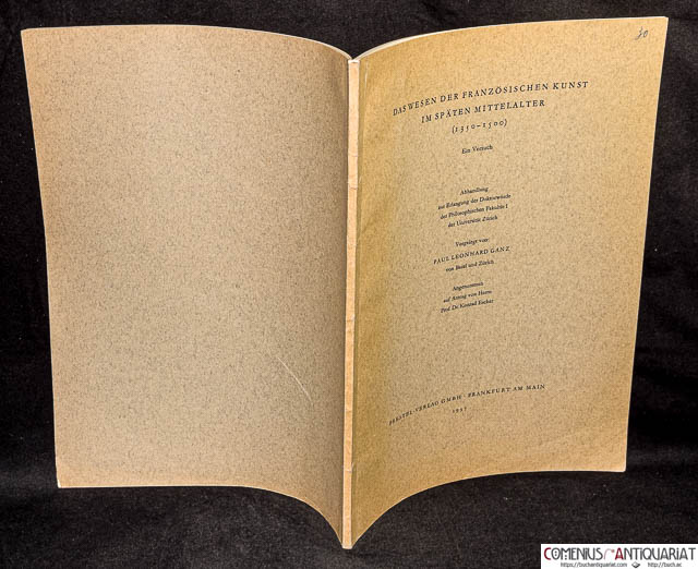 Ganz, Paul Leonhard, Das Wesen der französischen Kunst im späten Mittelalter (1350-1500). Ein Versuch. Frankfurt a. M.: Prestel-Verlag, 1937. 63 Seiten. Broschiert. 4to. 187 g* Umschlag etwas lichtrandig / gebräunt. Knitterig. Ganz | Mittelalter | Mediaevistik | Frankreich | Kunstgeschichte | Dissertation