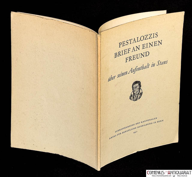 [Pestalozzi, Johann Heinrich] Pestalozzis Brief an einen Freund über seinen Aufenthalt in Stans. Bern: Berner Schulwarte, 195. 36 Seiten. Broschiert. 211 x 150 mm. 80 g* Schwache Gebrauchsspuren, Etwas knitterig, Widmung auf dem Vortitelblatt.