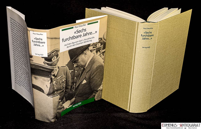 Stauffer, Paul, "Sechs furchtbare Jahre ...". Auf den Spuren Carl J. Burckhardts durch den Zweiten Weltkrieg. Zürich: Verlag Neue Zürcher Zeitung, 1998. 514 Seiten mit Literaturverzeichnis und Register. Leinen mit Schutzumschlag. Grossoktav. 225 x 155 mm. 897 g* Schutzumschlag etwas ausgeleiert.