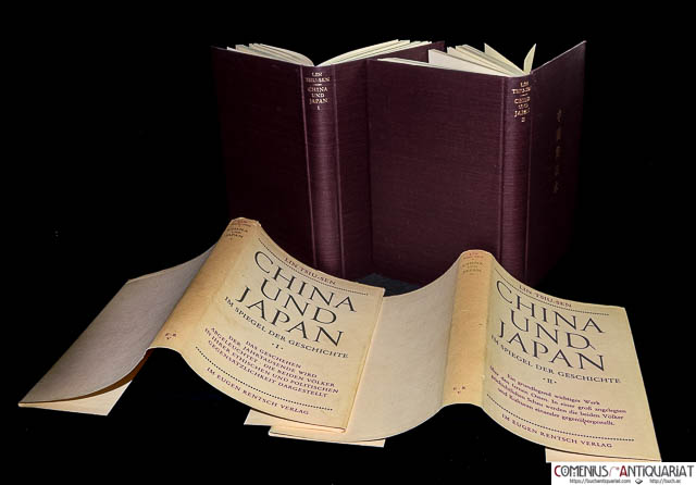 Tsiu-Sen Lin, China und Japan im Spiegel der Geschichte. Erlenbach, Zürich: Rentsch, 1944-1946. 317 und 383 Seiten mit Register und einer Faltkarte. Leinen mit Farbkopfschnitt und Schutzumschlag. 224 x 148 mm. * Vorwort von Ngai Shi-Teh. 1., 2697 vor bis 1070 n. Chr. 2., Vom Jahre 1070 bis zur Gegenwart. - Name auf den Vorsätzen, gebräunt.