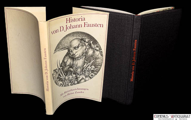 Zander, Heinz, Historia von D. Johann Fausten, dem weitbeschreiten Zauberer und Schwarzkünstler. (1587). 1. Auflage. Frankfurt: Büchergilde Gutenberg, 1981. 164 Seiten mit 20 Abbildungen. Leinen mit Schutzumschlag. 4to. 272 x 189 mm. 698 g* 20 Bleistiftzeichnungen von Heinz Zander. Mit "Nachbemerkungen: Doctor Faustus bei Zander" von Hubert Witt. Textfassung von Elvira Pradel nach dem Neudruck des Faustbuches von 1587. - Schutzumschlag mit Gebrauchsspuren.