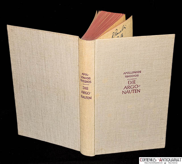 Apollonius, Rhodius, Die Argonauten. 10. - 15. Tausend. Wiesbaden: Dieterich, 1947. XVI, 237 Seiten. Leinen mit Kopfgoldschnitt. 178 x 107 mm. * Verdeutscht von Thassilo von Scheffer. - Gebräunt, Deckel leicht konkav verzogen, Name auf dem Vorsatzblatt.