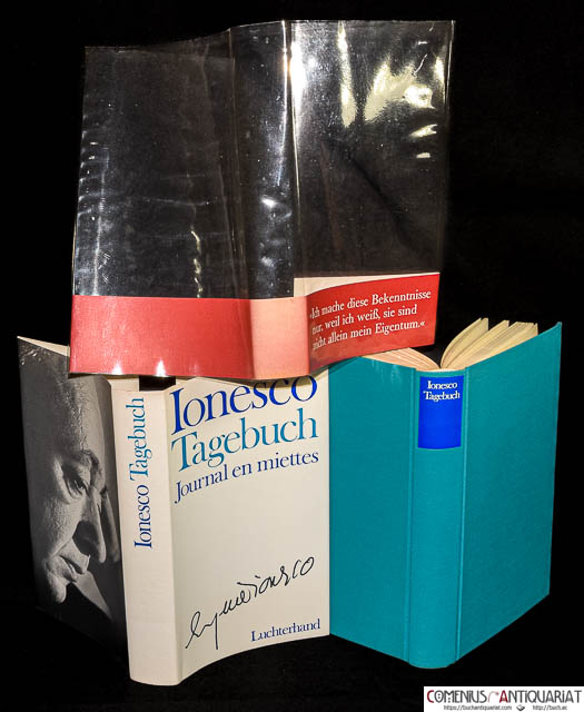 Ionesco, Eugène, Tagebuch. Journal en miettes. Neuwied, Berlin: Luchterhand, 1967. 244 Seiten. Leinen mit Schutzumschlag und Bauchbinde. 194 x 114 mm. * Aus dem Französischen von Lore Kornell. - Leicht gebräunt.